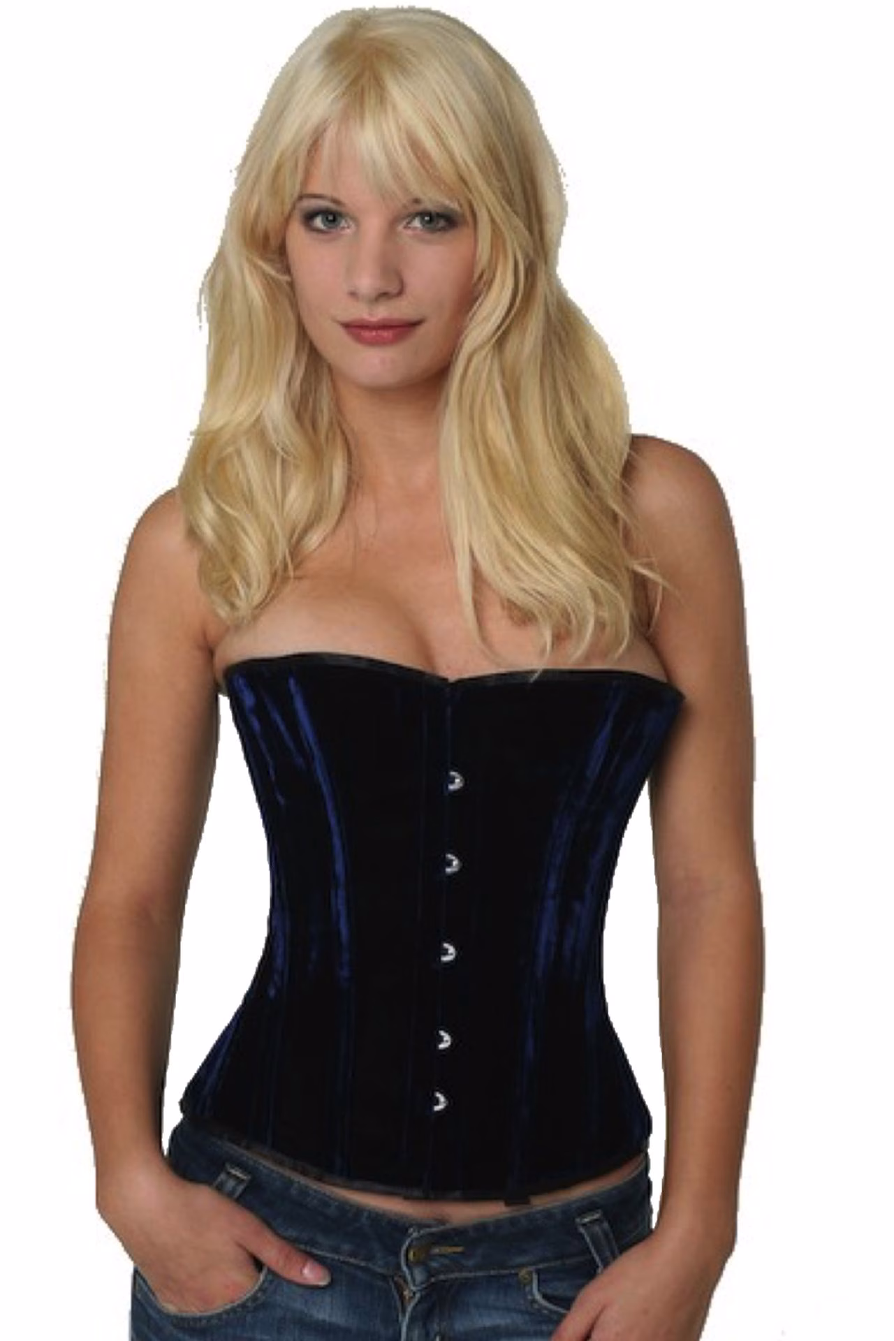 Das Halbbrustkorsett betont das Dekolletee. Es hebt den Busen, wobei der obere Teil des Busens reizvoll in Szene gesetzt wird. Blau ist der Klassiker unter den Modefarben. Mit einem blauen Korsett strahlen Sie Ruhe und Eleganz aus. Samt ist für Korsetts ein sehr traditionelles Material. Samtkorsetts verleihen der Trägerin eine besondere Eleganz