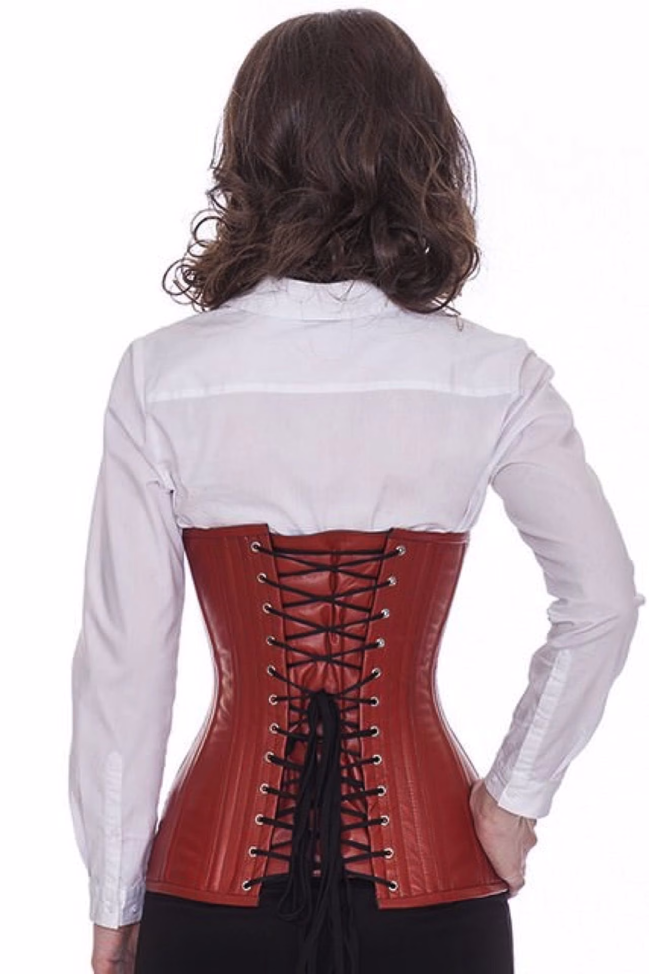Korsett Braun Hellbraun Unterbrust geschwungen Leder ln27