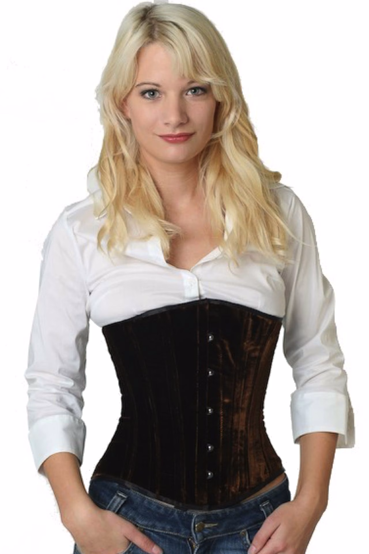 Das Unterbrustkorsett reicht vom Brustansatz bis zur Hüfte. Es deckt dabei auch den Unterbauch gut ab. Braun hat als Farbe auch etwas Warmes und Beruhigendes. Mit einem braunen Korsett stellen Sie sich also nicht aggressiv in den Mittelpunkt, aber gerade dieses kann seinen besonderen Reiz haben. Samt ist für Korsetts ein sehr traditionelles Material. Samtkorsetts verleihen der Trägerin eine besondere Eleganz